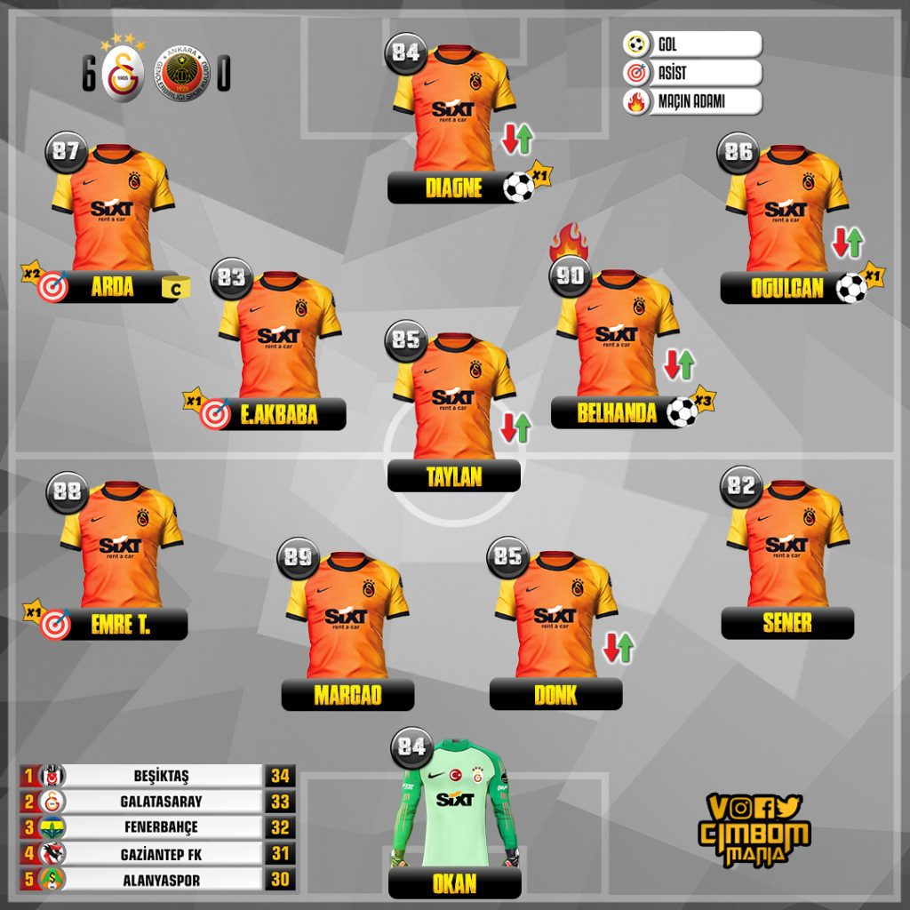 Süper Lig’in 18. haftasında oynanan ve Galatasaray’ın 6-0’lık skorla galip ayrıldığı maçta, sarı-kırmızılı takımda kim neler yaptı? Cimbommania sizin için hazırladı!
